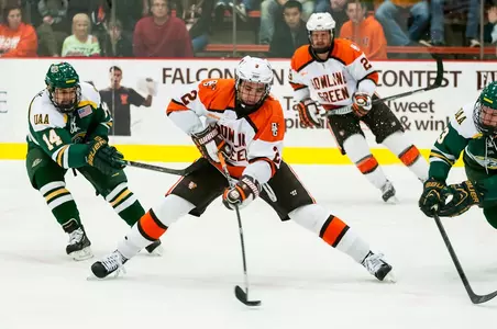 2014-15 (Sophomore): Played in 38-of-39 games and tied for second on the team with 25 points … Tied for the team lead with 17 assists and carried a +8 on-ice rating, fourth-best on the Falcons … Scored three game-winning goals … Posted the first multi-goal game of his career with two goals and an assist in a 5-0 win over Northern Michigan … That performance against Northern Michigan was also the first three-point game of his career and he took a season-high seven shots, while blocking two shots as well … Recorded two assists in each game of back-to-back wins at Alabama Huntsville to open WCHA play … In total, posted six multi-point games and the Falcons went 5-1-0 in those contests … All three game-winners came in one-goal victories over Clarkson, Michigan Tech and Ferris State.